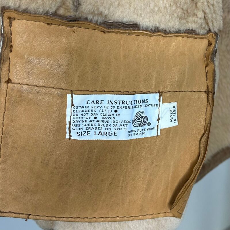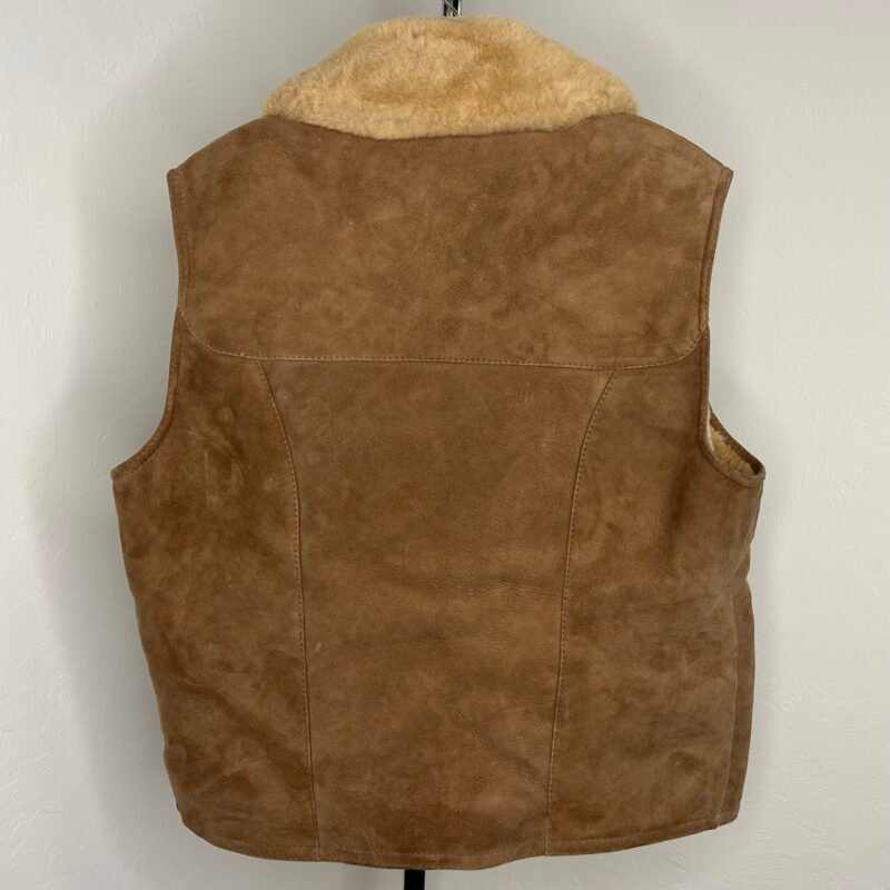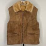 Abercrombie & Fitch by Sawyer of Napa suede and wool vest. Wool lining with fold over collar. YKK oversized brown zipper. Men’s size large. 100% pure wool. Made In U.S.A.