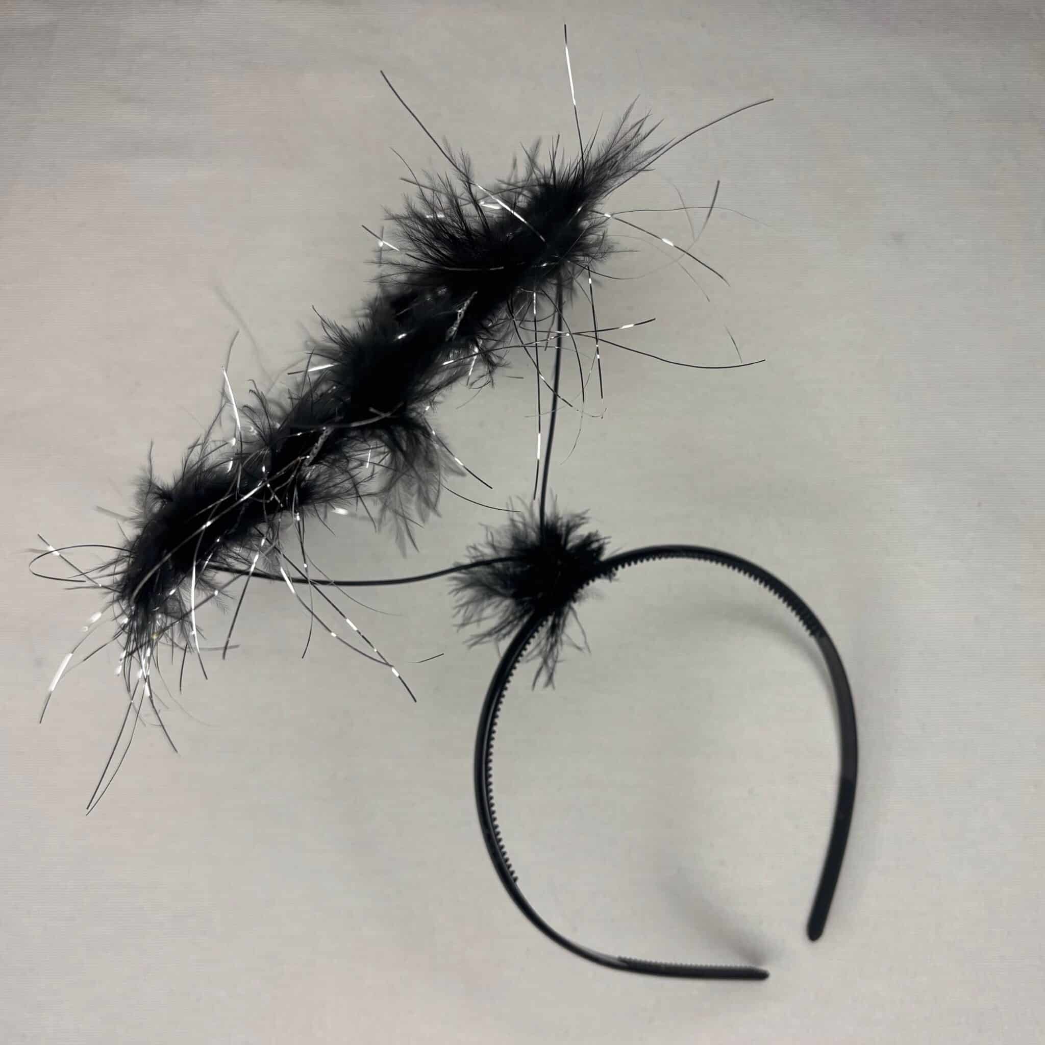 Black angel halo headband. Feathers with silver tinsel throughout.