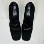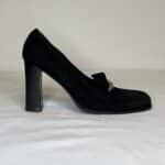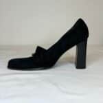 Gucci black suede heels. Square toe and 3.75″ block heel. Women’s size 8B.
