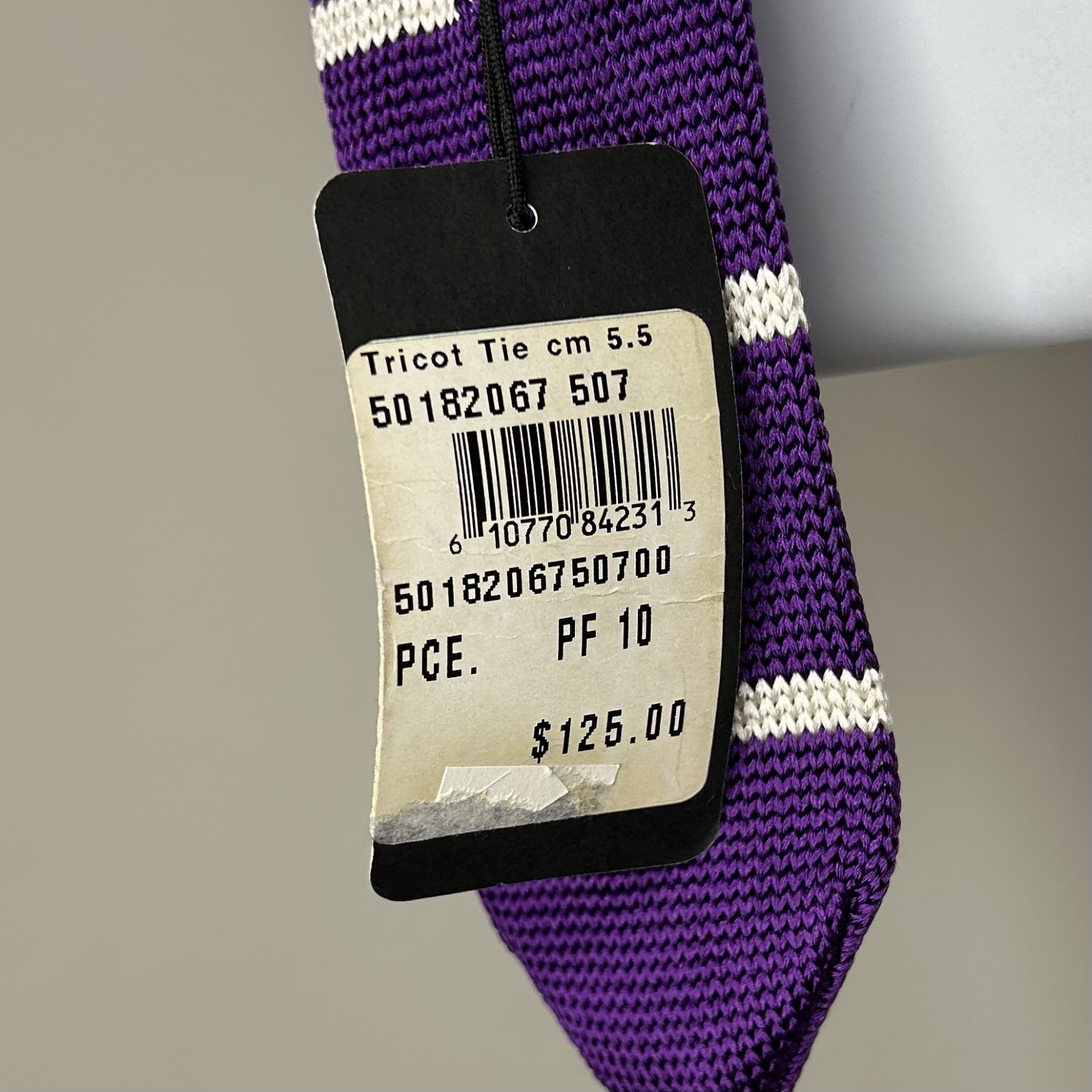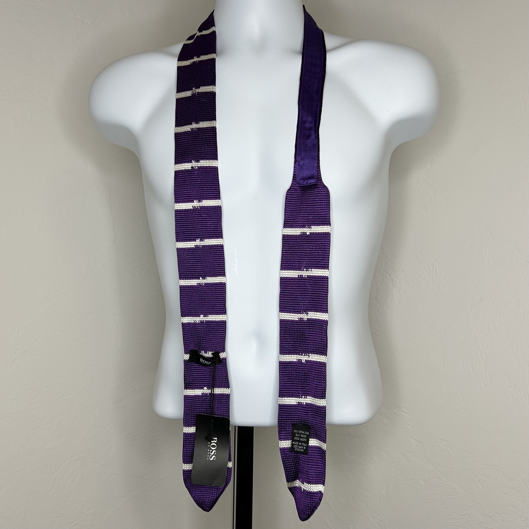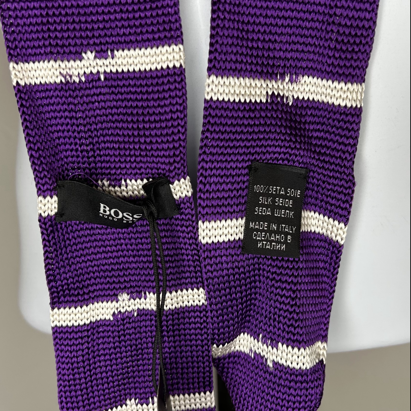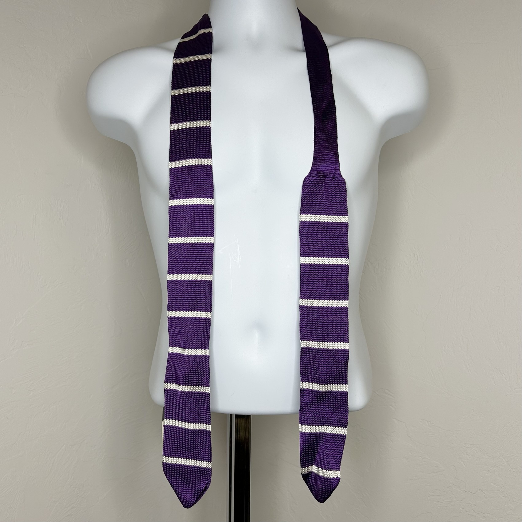 Knitted White Striped Purple Tie