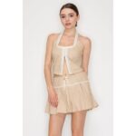 Lace Trim Taupe Halter Top