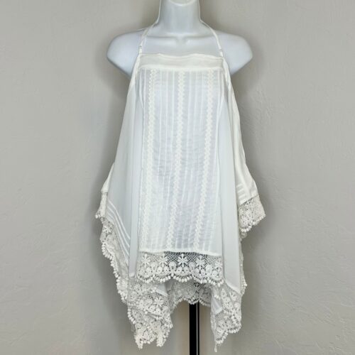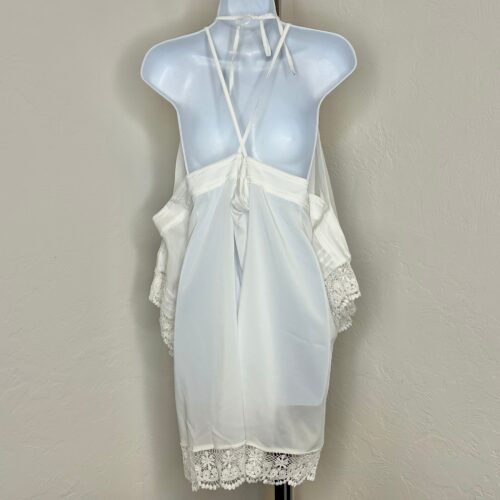 Denim open back halter neck dress. Silver partial front zipper closure. Collared halter. Front bust seams. Hip pockets and cargo style side pockets. Fabric has stretch. 65% cotton, 30% polyester, 4% rayon, 1% spandex.