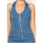 Open Back Front Zip Denim Dress