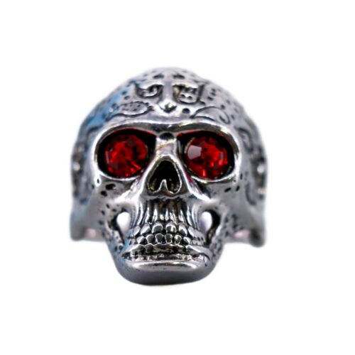Skull ring. Size 9. Features red rhinestones for the eyes.