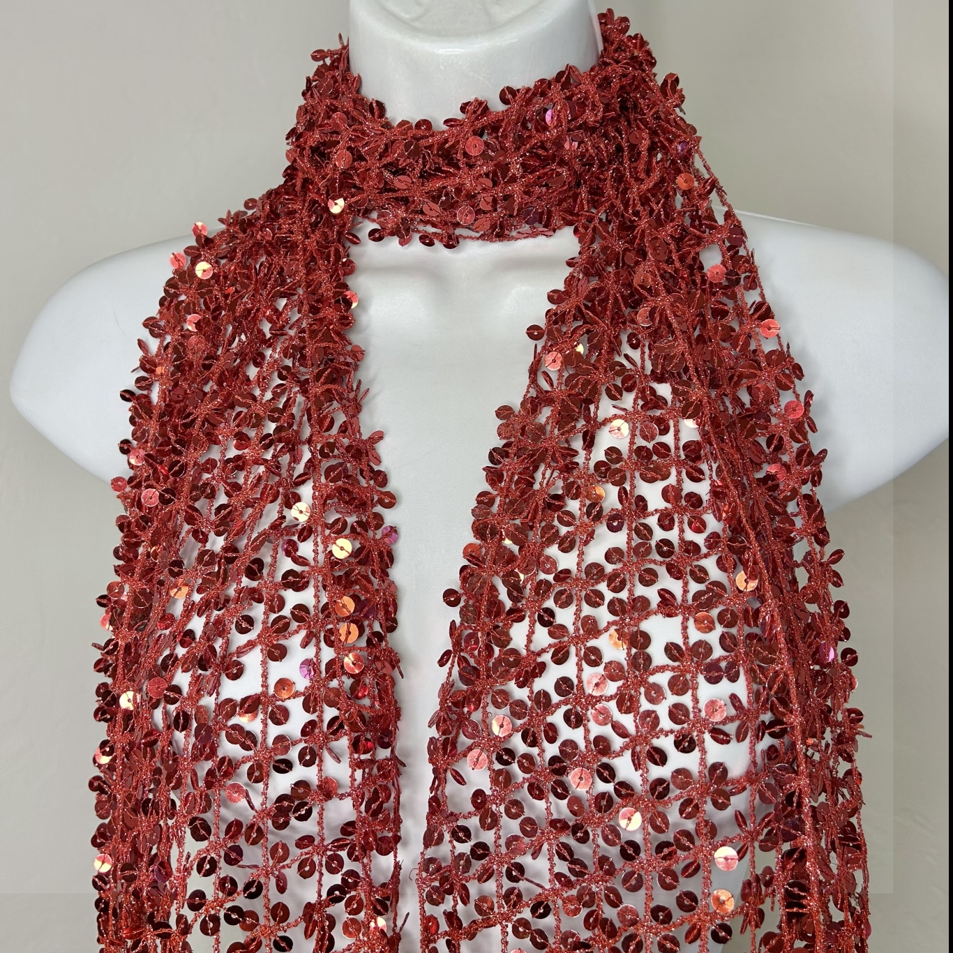 A red sequined scarf.