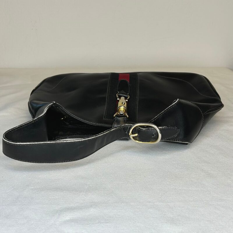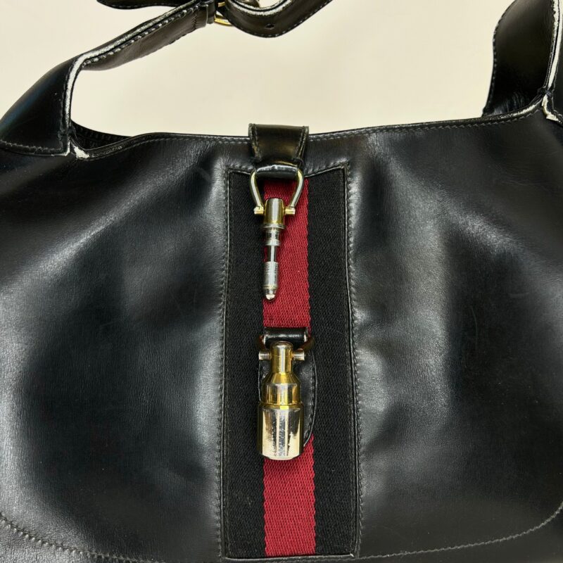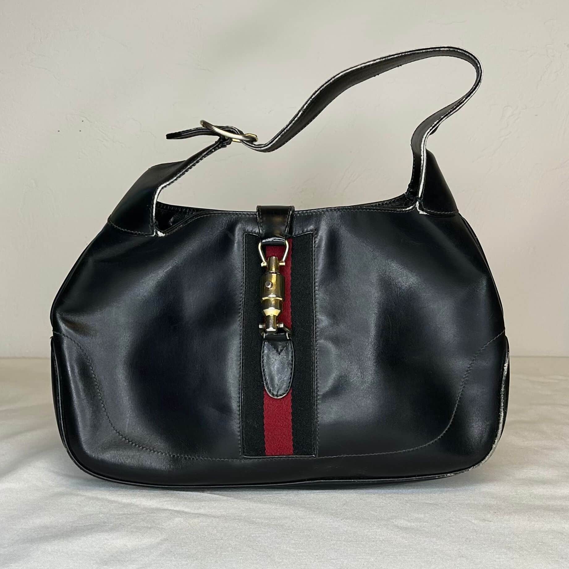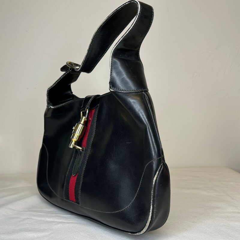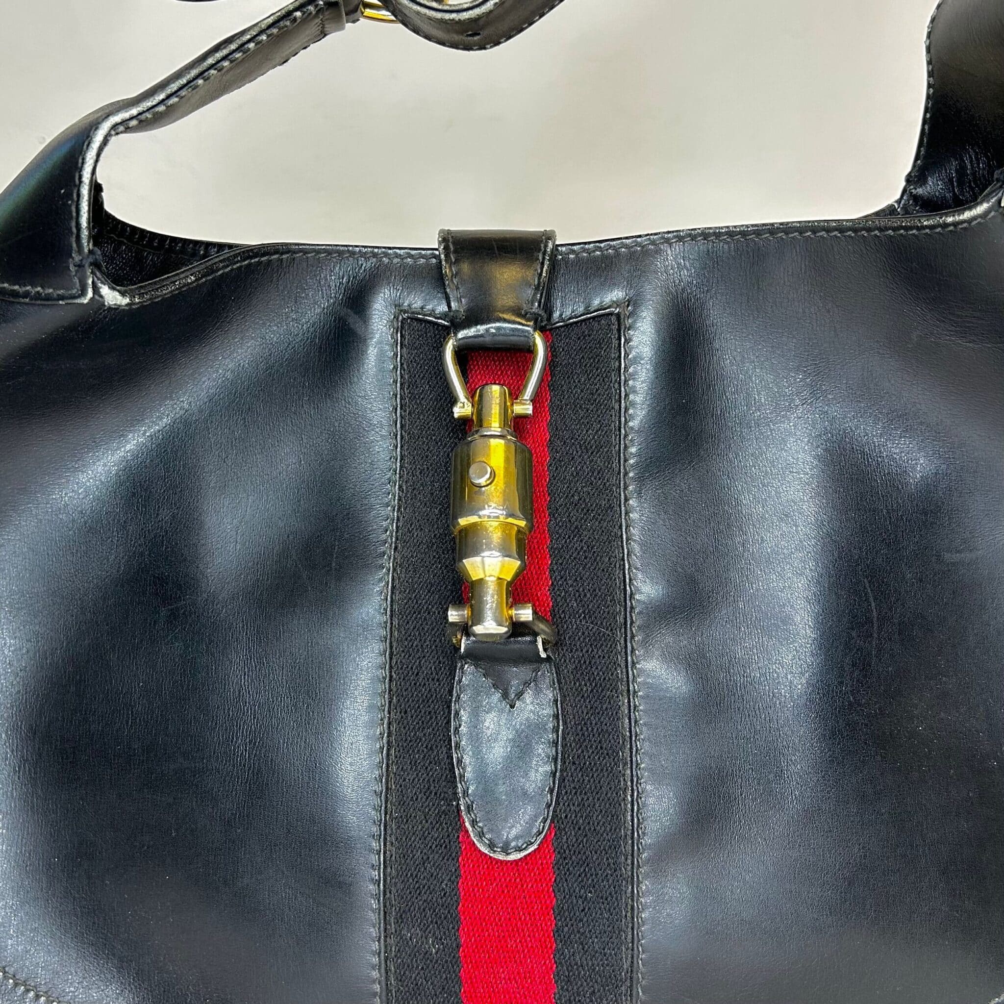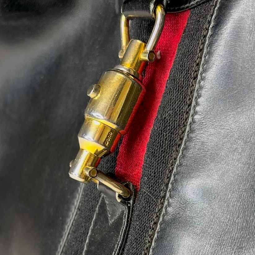 Gucci Sherry Jackie shoulder bag. Red and black stripe on front. Some wear from use. Circa 1960s-1970s.
