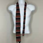 Rooster skinny square necktie. Red, tan, black, and navy blue woven diamond pattern. Originally sold in a Woodward & Lothrop store. Circa 1960s-1970s. 100% cotton.