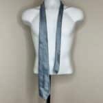 Yves Saint Laurent neckwear light blue embroidered tie. Small pink and white stitched pattern. Small stain on skinny end, as pictured.