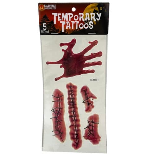 Bloody Stitches & Handprint Temporary Tattoos
